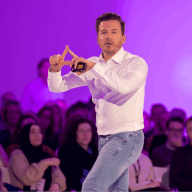 "Jarno Duursma sprak op de jaarlijkse klantendag van Hewlett Packard Enterprise. Hij nam ons mee op een inspirerende reis door trends als AI en deepfake en de impact die deze trends hebben op de maatschappij, nu en in de toekomst. Prikkelend, energiek en volop interactie.